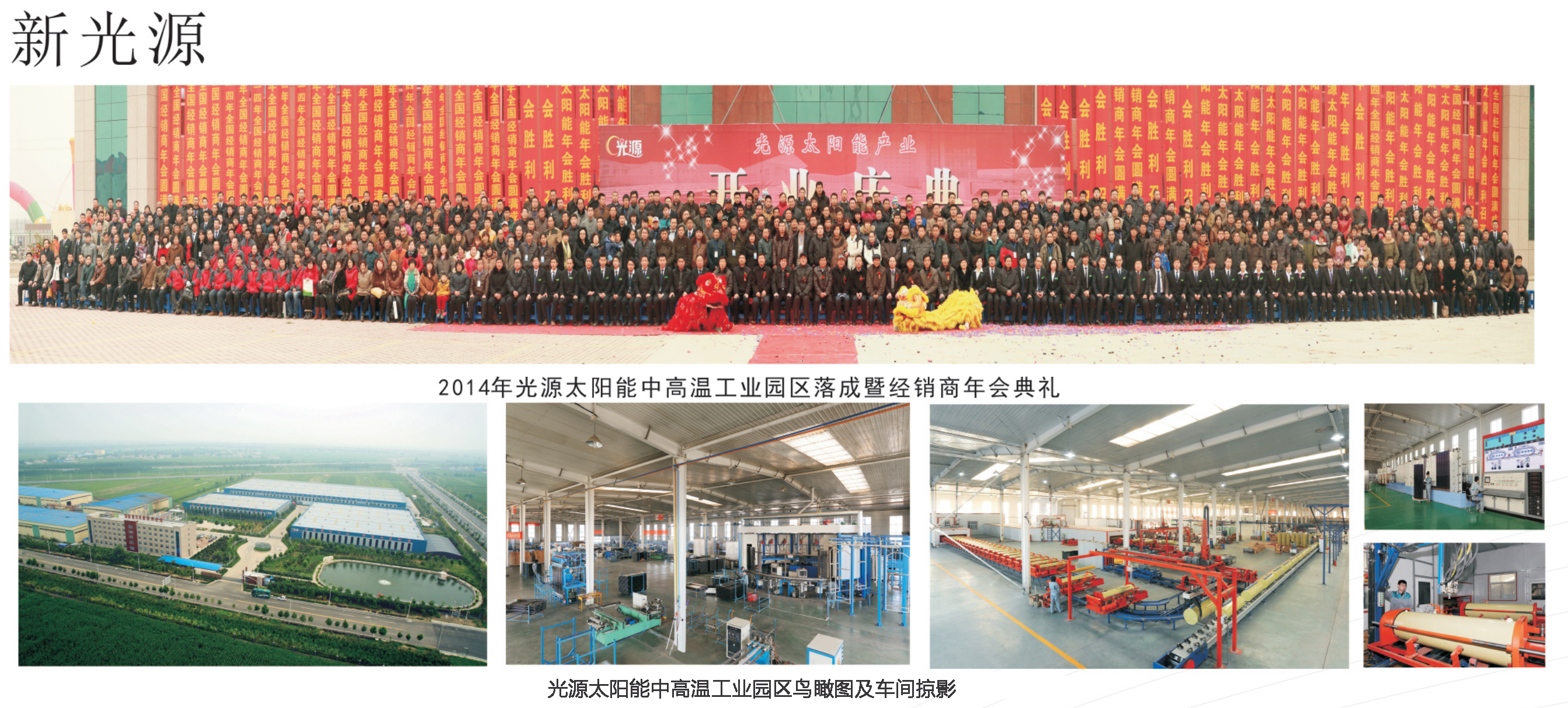 2013年12月光源公司搬遷到新廠區(qū),如今的光源公司,以黨的路線方針和政策為指導(dǎo),以科技發(fā)展與創(chuàng)新為契機,以太陽能開發(fā)與利用為訴求,不僅夯實了太陽能熱水系統(tǒng)等傳統(tǒng)產(chǎn)品的基石,更在新能源產(chǎn)品的開發(fā)中屢戰(zhàn)佳績。