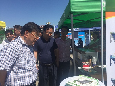 (省城鎮(zhèn)化工作領(lǐng)導(dǎo)小組辦公室副主任于文學(xué)(左一)參觀光源展位▲)