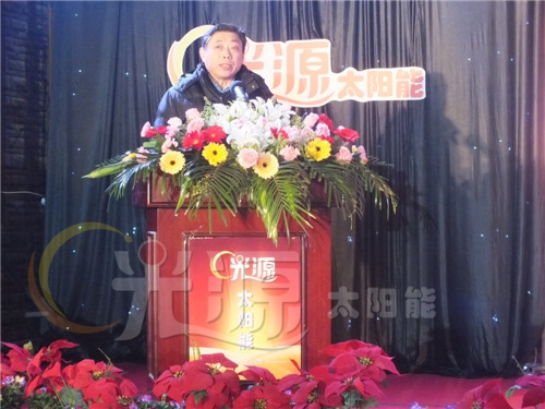 首先,12月6日上午9:30,光源年會(huì)隆重開幕。在年會(huì)上,中國太陽能熱利用產(chǎn)業(yè)聯(lián)盟副理事長(zhǎng)、中國太陽能熱利用產(chǎn)業(yè)協(xié)會(huì)副理事長(zhǎng)、河北光源太陽能科技有限公司董事長(zhǎng)李成彬致辭。他代表光源公司對(duì)各位領(lǐng)導(dǎo)、專家、經(jīng)銷商朋友的到來表示熱烈歡迎和衷心感謝,對(duì)光源2014年取得的成績(jī)和2015年發(fā)展方向進(jìn)行了總結(jié)和展望。李成彬指出,2014年是光源發(fā)展史上不平凡的一年,在國內(nèi)經(jīng)濟(jì)增速放緩的大背景下,太陽能光熱行業(yè)也受到極大影響。但光源勇敢拼搏、堅(jiān)定信念,以市場(chǎng)為導(dǎo)向,以銷售為龍頭,產(chǎn)量雖然相比去年有所下滑,然而,我們依然對(duì)太陽能光熱行業(yè)的發(fā)展前景充滿信心,相信太陽能光熱的春天一定還會(huì)到來。行業(yè)領(lǐng)導(dǎo)羅振濤、霍志臣、張曉黎、賈鐵鷹、楊桂元先后講話。在講話中,領(lǐng)導(dǎo)們肯定了光源跨越發(fā)展、科技創(chuàng)新取得的喜人成績(jī),肯定了光源在全國同行業(yè)中的地位和作用,對(duì)光源未來發(fā)展提出了指導(dǎo)性意見。光源公司總經(jīng)理劉迎波在講話中詳細(xì)分析了光源公司面對(duì)的市場(chǎng)形勢(shì),他說,光源公司在今后的發(fā)展道路上要審時(shí)度勢(shì),及時(shí)調(diào)整經(jīng)營(yíng)戰(zhàn)略和營(yíng)銷政策,做精做細(xì)終端市場(chǎng),和廣大經(jīng)銷商一起,打造符合光源特點(diǎn)的企業(yè)發(fā)展之路。