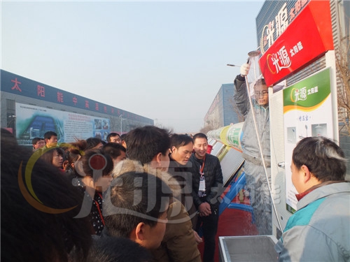 12月7日上午,光源公司邀請(qǐng)經(jīng)銷商朋友到廠區(qū)參觀并合影留念。光源公司在廠區(qū)的特定位置展示了光源的產(chǎn)品,尤其是新品的展示更安排了技術(shù)人員現(xiàn)場(chǎng)演示與講解,廣大經(jīng)銷商朋友對(duì)光源新品產(chǎn)生了濃厚的興趣,紛紛駐足光看,聆聽講解。7日下午,光源太陽能年會(huì)舉行訂貨會(huì),活動(dòng)現(xiàn)場(chǎng)氣氛熱烈,經(jīng)銷商朋友爭(zhēng)先恐后的簽訂購貨協(xié)議,訂貨量與去年持平。
