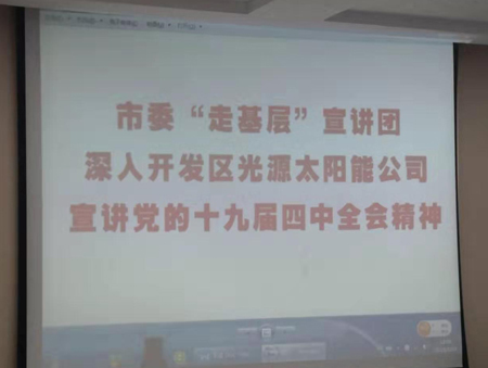 12月3日市委“走基層”宣講團(tuán)一行6人到開(kāi)發(fā)區(qū)光源太陽(yáng)能科技有限公司,宣講黨的十九屆四中全會(huì)精神。